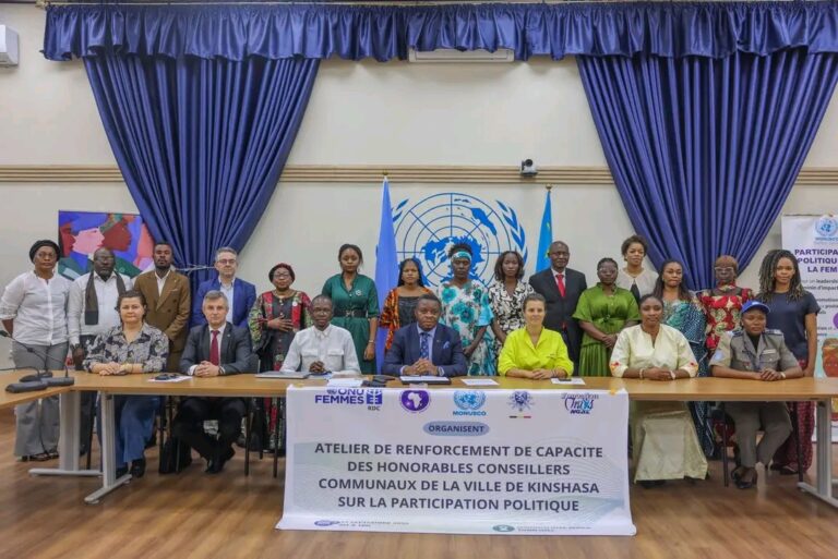 En prélude de célébration de la journée de la démocratie, la Fondation Chris Ngal, la SJACPS et la Section Genre de la MONUSCO, avec l’appui technique d’ONU Femmes, ont organisé à Kinshasa un atelier de renforcement des capacités destiné à 50 conseillers communaux en participation politique, le leadership et la gouvernance inclusive.