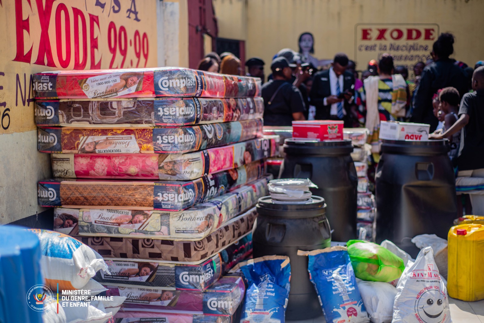 Pour répondre, en partie, à ces besoins, Micheline Ombae Kalama a apporté une assistance significative constituée de vivres et de biens essentiels, notamment des sacs de riz, des poulets, des bidons d’huile, des matelas, du savon, ainsi que des équipements électroménagers et audiovisuels destinés à améliorer le cadre de vie des enfants.