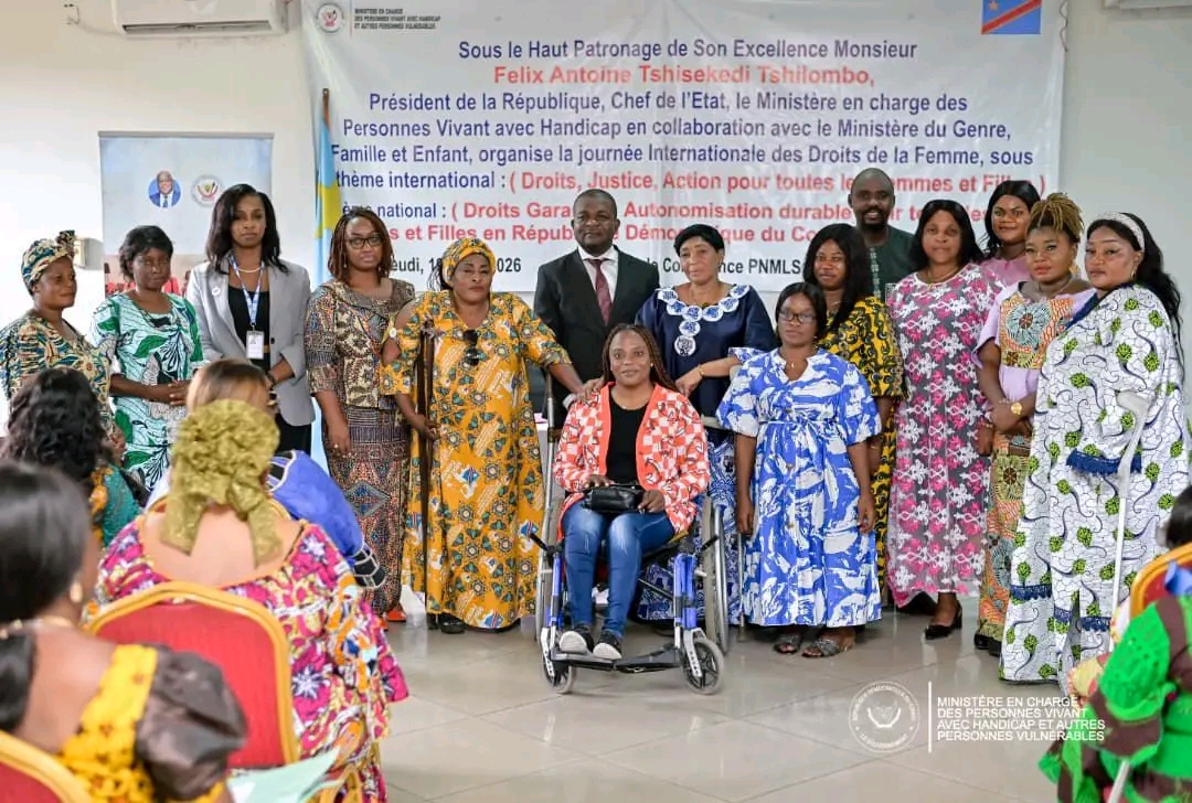 Placée sous les thèmes international « Droits, justice, action : pour toutes les femmes et les filles » et national « Droits garantis : autonomisation durable pour toutes les femmes et filles en RDC », cette activité a mis en lumière la nécessité de renforcer l’inclusion et la participation des femmes en situation de handicap.