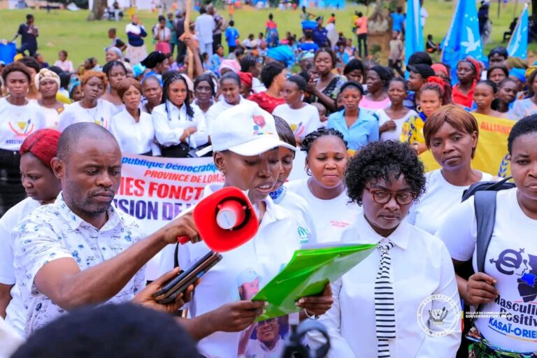 Partie du rond-point KAS jusqu’au gouvernorat de province, cette mobilisation a réuni des femmes issues de différentes structures féminines, des organisations de la société civile ainsi que des représentantes de la Division provinciale du Genre, Famille et Enfant. La marche a été organisée à l’initiative du ministère provincial du Genre, Famille et Enfant, chapeauté par la ministre Laurianne Mujinga.
