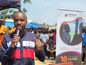 Dans son intervention, la SOFEPADI a expliqué la signification des 16 jours d’activisme ainsi que les différentes activités prévues pour marquer cette campagne. Michel Kamana responsable des projets au sein de SOFEPADI.